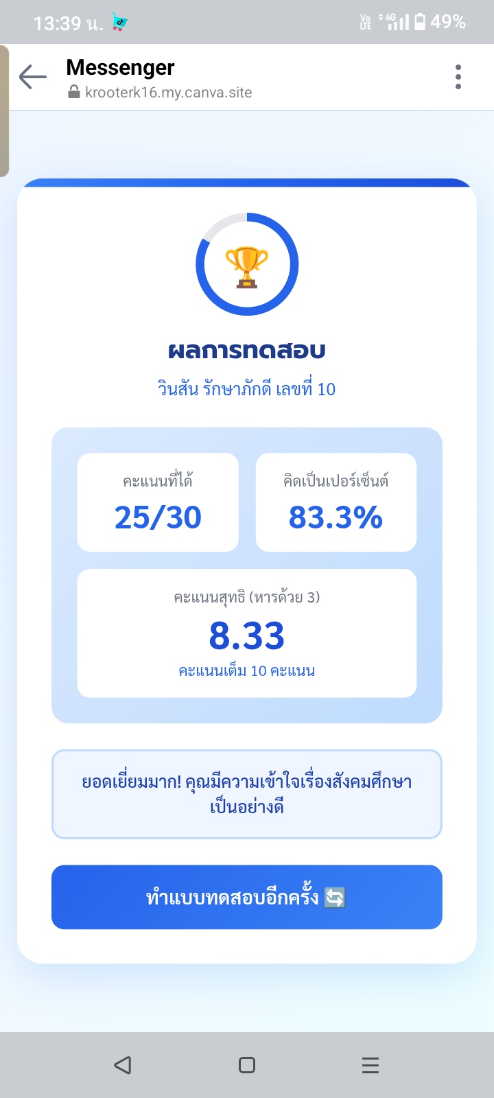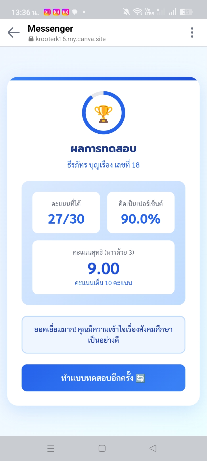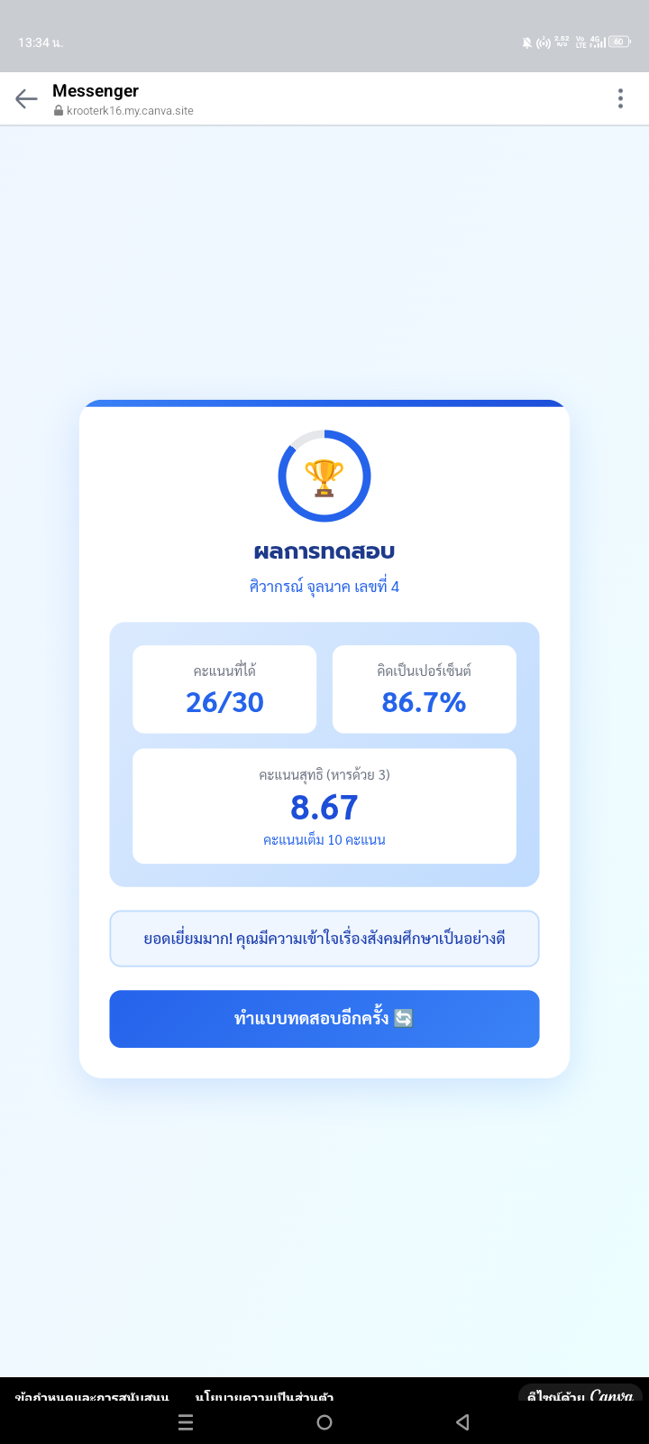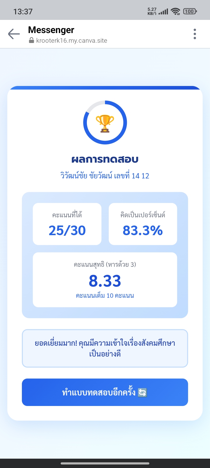 กรอกคำว่า สวัสดี ในช่องด้านล่าง