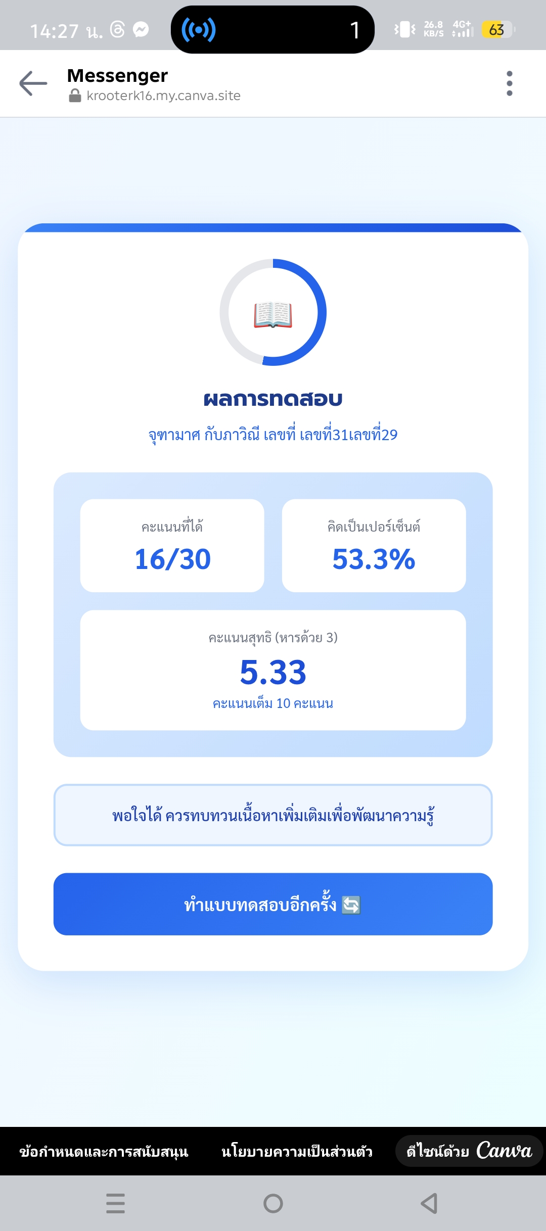 * ข้อความ :